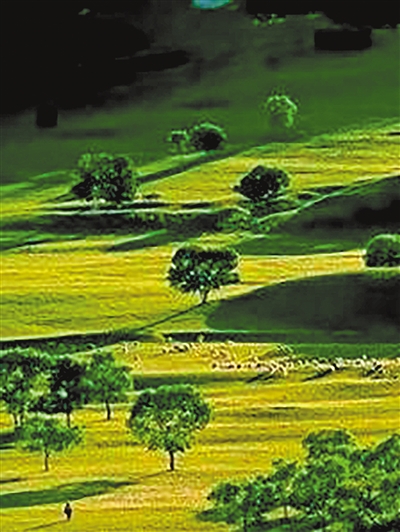 从遥远的地方被风吹落这片辽阔河谷的人们,犹如落叶顺从于河流,安静地接受了命运的安排,将根扎进湿润的泥土,在这里开荒垦田、繁衍生息。这里的土地如此广袤,好像人们漫长的一生。就在这片曾经荒凉的土地上,人们种下苹果、哈密瓜、西瓜、葡萄、猕猴桃、大枣、杏李、香妃海棠,也种下高粱、小麦、大米、玉米、豌豆,以及黄瓜、西红柿、葫芦瓜、辣椒……仿佛诞生于山谷的太阳,以浓郁的色彩,肆意涂抹着人们种下的蔬菜和粮食,并将天山雪水和伊犁河水汇聚而成的甜,注入整个秋天。