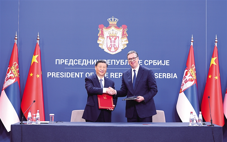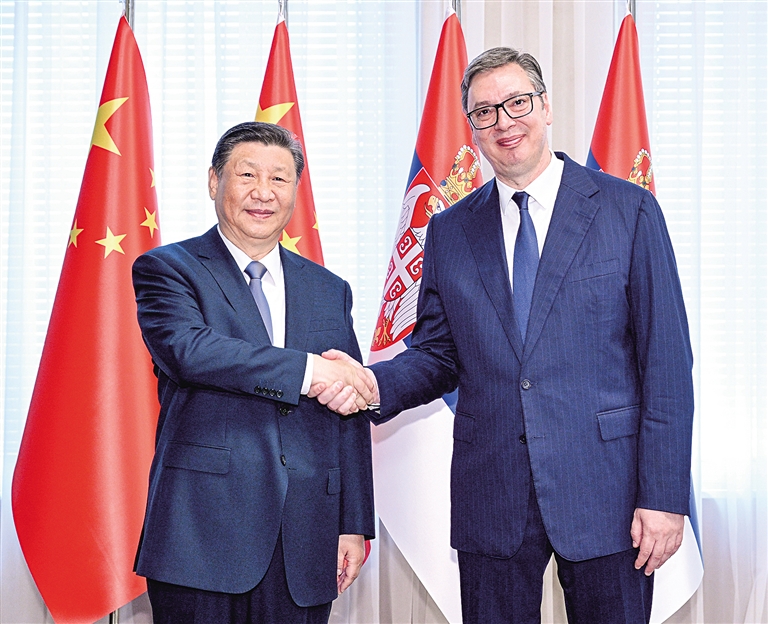 武契奇表示,中国的投资与合作极大地促进了塞尔维亚的经济社会发展,也提升了塞人民的生活水平。特别是2016年以来,在习近平主席亲自关心和支持下,河钢斯梅戴雷沃钢厂取得巨大经济社会效应,不仅彻底改变了钢厂的命运,也增强了民众的信心和希望。塞尔维亚的未来同中国紧密相连。塞方期待同中方密切各领域、各层级交流,加强在基础设施、新能源、创新、人工智能、人文等各领域合作。积极推进高质量共建“一带一路”,如期完成匈塞铁路塞尔维亚段建设,欢迎更多中国企业来塞投资合作,期待开通两国更多直航,以塞中自贸协定生效为契机,进一步扩大两国经贸合作。今天我们宣布提升塞中全面战略伙伴关系、构建新时代塞中命运共同体,必将成为塞中关系史上新的里程碑。■下转第2版 ■上接第1版 塞方坚定支持并将积极参与习近平主席提出的全球发展倡议、全球安全倡议、全球文明倡议,同中方密切多边战略协作,共同反对霸权强权,维护联合国宪章宗旨,捍卫国际公平正义。