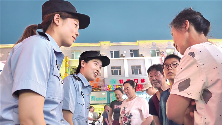 “有他们在,我们逛街很安心。”和朋友一起正在夜市购物的市民张丽娟说。