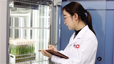 位于伊利现代智慧健康谷的国家乳业技术创新中心,科研人员身穿白大褂,操作着精密仪器,潜心钻研乳业课题。