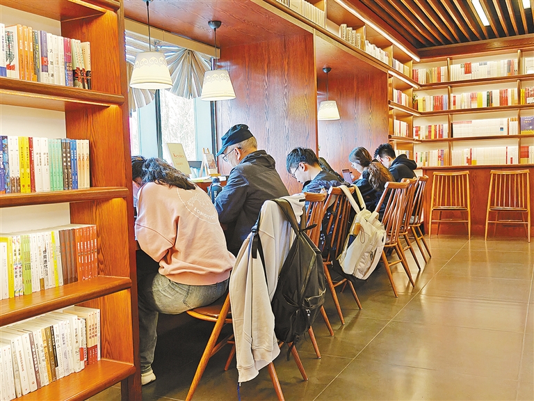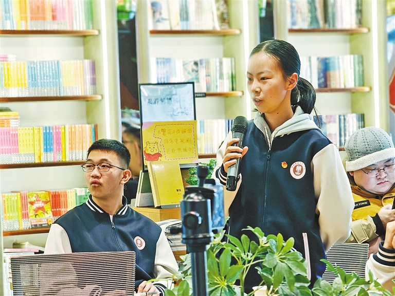 连日来,在呼和浩特市新华书店腾飞路店内,记者看到前来借书、阅读、学习的学生络绎不绝,书香氛围浓厚。在儿童阅读休闲区,不少小朋友围坐在一起,捧着书籍遨游在书海中,有的孩子分享了《小王子》中的温暖故事,有的孩子讲述了《三国演义》中的英雄传奇,还有的孩子介绍了《昆虫记》中的奇妙世界……他们沉浸式享受着阅读带来的快乐。