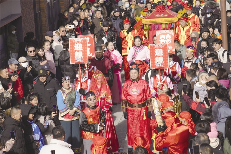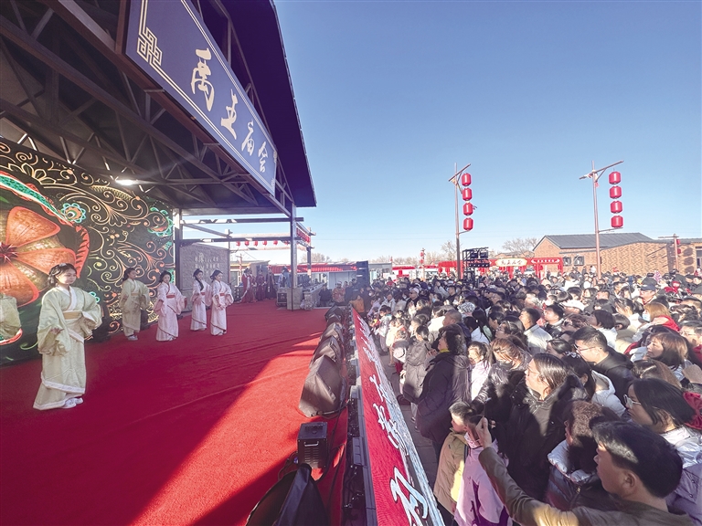 红火热闹的《土默特婚礼》演出,迎亲、撒喜糖、抢红包、拜堂成亲,一路吹拉弹唱,一路与游客欢乐互动;《西口情》沉浸式演出上演了“初遇包头 安家落户”“深耕包头 祈福未来”“活力包头 比诗招亲”,以及“魅力包头 喜结连理”4个情景,演员表演细腻、观众看得入迷;嗨翻全场的音乐篝火派对点燃了黄河之畔的冬日夜晚……流行、复古、国潮,丰富多彩的节目活动轮番登场,让现场观众大饱眼福。