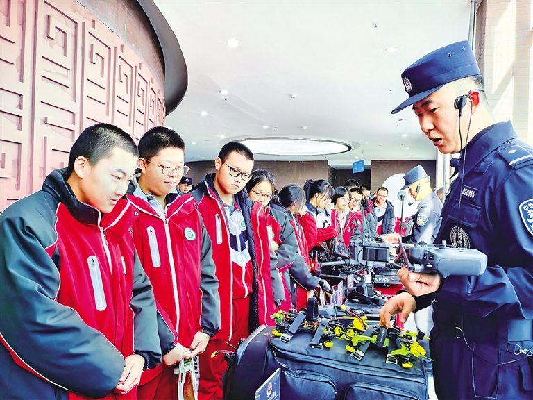 12月26日,学生在参观反恐装备。今年是《中华人民共和国反恐怖主义法》颁布9周年,当日上午,《中华人民共和国反恐怖主义法》暨内蒙古自治区反恐怖宣传教育活动启动仪式在内蒙古大学举行。活动现场,通过反恐怖公益宣传片展播、反恐怖知识问答和反恐怖装备展示等形式,让广大市民和师生对反恐怖工作有了更直观的了解。本报记者 牟野 摄