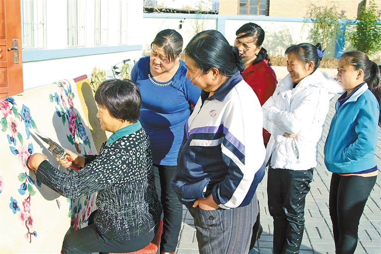 “1972年,我刚进阿拉善左旗地毯厂工作的时候才16岁。”段丽珍回忆道,经过认真学习后,她很快就掌握了地毯的织造、片花、整形、造旧及成品验收等技艺。1990年,还被聘为厂里的技术指导和专职质检员。2004年,地毯厂倒闭,段丽珍开起了织造厂,先后有30多名下岗失业人员在她创办的织造厂内生产地毯。