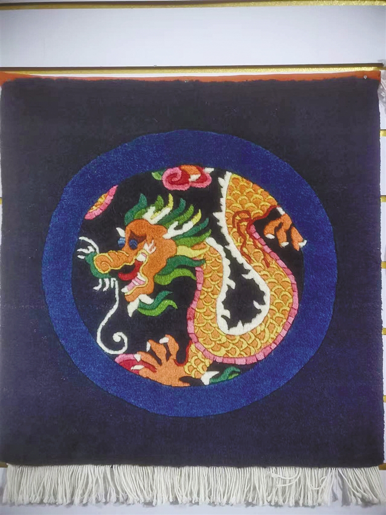 阿拉善地毯瑰丽、大方,兼具实用性的同时又寓意吉祥安康,虽然销量少了,但是仍然在人们的心中有一席之地。像段丽珍这样的家庭工坊订单不少,街面上也有多家从事地毯售卖的专营店。自2018年以来,段丽珍在阿拉善定远营古城非遗展示区开设了近40平方米的非遗展厅,展示了70多条制作精美的阿拉善仿古地毯、挂毯等非遗作品。在展厅内放置木制织毯机,对徒弟进行现场教学的同时,还向大众进行非遗文化的展示展览。目前,段丽珍还想着再找几个年轻的徒弟,让非遗手艺一代代传下去……
