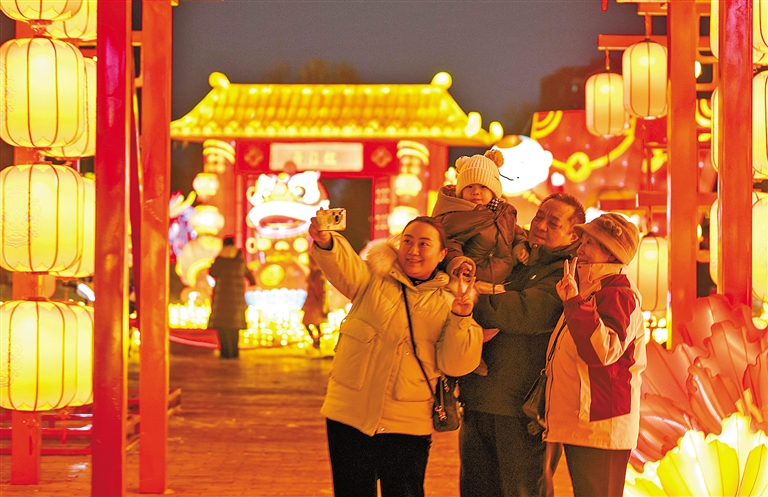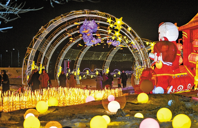 华灯初上,行走在呼和浩特市的夜色中,整个城市流光溢彩,充满喜庆节日氛围。色彩斑斓、造型各异的彩灯装点着大街小巷,吸引着众多市民游客赏灯游玩、打卡拍照,红红火火迎新年。