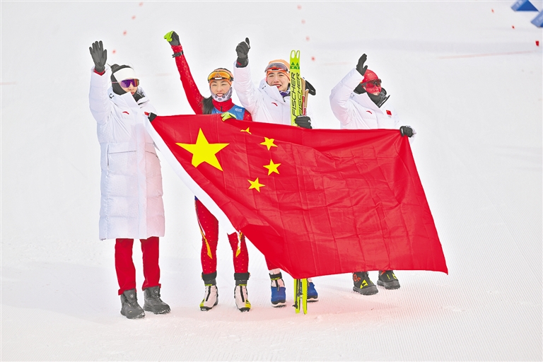 冬季两项赛场上,唐佳琳、文颖、褚源蒙、孟繁棋组成的中国队摘得中国代表团当日唯一一金。在开局不利的情况下,中国队在最后时刻反超韩国队,以21秒的领先优势夺得冠军,最后一棒的孟繁棋赛后说:“最后一棒确实压力很大,但是心里憋着一股不服输的劲儿,不管结果如何,也想着要拼到最后。”