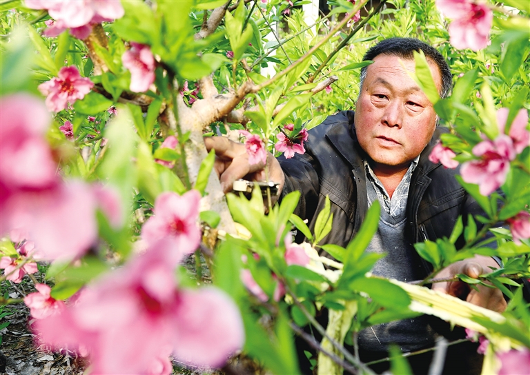 2月18日,在河北省沧州市吴桥县于集镇孙庄村,农民在给油蟠桃树剪枝。早春时节,各地加紧开展农业生产,积极进行春耕备耕,田间地头处处是忙碌的景象。新华社发