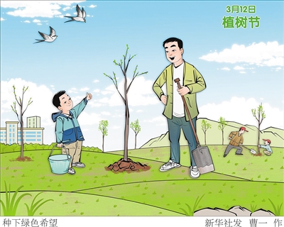 增绿就是增优势,植树就是植未来。2025年3月12日是第47个中国植树节,在这个特别的日子里,让我们共同携手种下希望的种子、收获美好的未来。新华社发 曹一 作