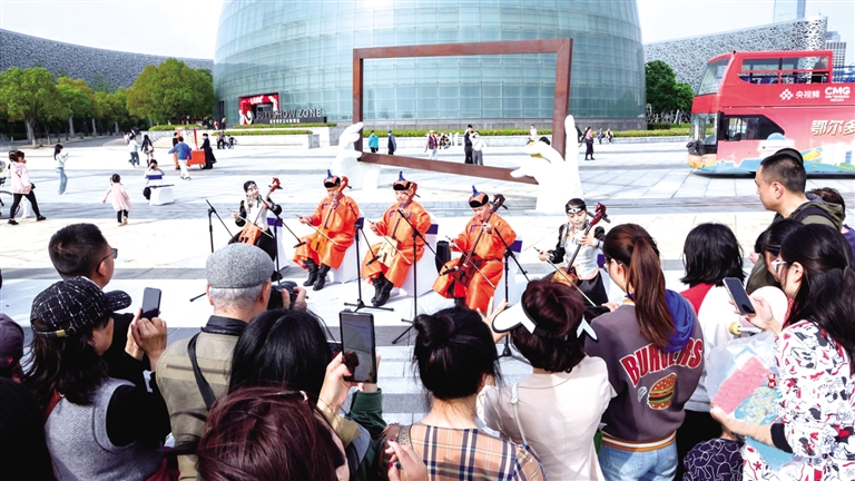 而在国内,“鄂尔多斯文化神州行”留下的印记,映照出北疆文化的春色满园。多年来,鄂尔多斯市立足丰富的北疆文化资源,挖掘独具特色的“鄂尔多斯基因”进行创造性转化、创新性发展,“文化神州行”先后在北京、香港、广州、深圳、哈尔滨、上海、成都、福州、杭州、佛山、西双版纳、三亚、苏州、重庆等多个城市和地区举办。从视觉、听觉、嗅觉、味觉、触觉到心觉,每一场“文化神州行”都在用“暖城”视角诠释传播北疆文化,让来自祖国北疆的文化带着温度唱响最强音。