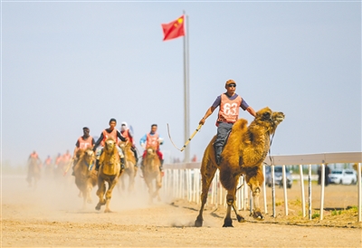 “‘小丫头’从2岁起就开始比赛了,一直都是前三名!”来自达来呼布镇的杨建国骄傲地说,这次活动,他带来了4峰骆驼,他口中的“小丫头”——一峰4岁母驼,在下午刚拿下骆驼6000米速度赛的第一名。