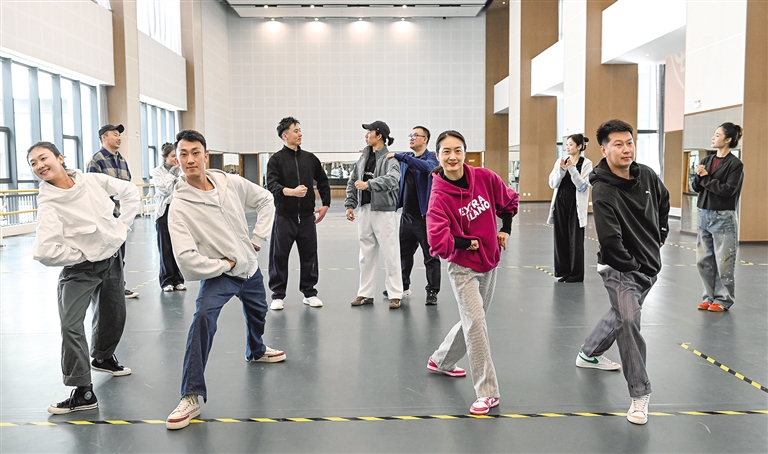 5月7日,自治区直属乌兰牧骑的队员们正在抓紧排练沉浸式戏剧《传旗》。该剧以1965年乌兰牧骑首次全国巡演为故事背景,通过沉浸式戏剧表演形式,再现第一代乌兰牧骑队员的红色初心,致敬他们扎根生活、服务人民的崇高精神。本报记者 王磊 摄