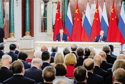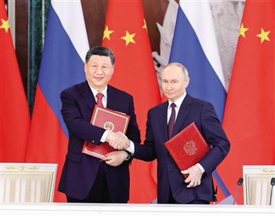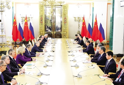 习近平指出,近年来,在双方共同努力下,中俄关系保持稳定、健康、高水平发展态势,长期睦邻友好、互利合作共赢成为两国关系的鲜明特征。两国政治互信根基越扎越深,务实合作纽带越系越牢,人文交流和地方交往越来越红火,新时代的中俄关系更加从容自信、稳定坚韧。历史和现实充分证明,持续发展和深化中俄关系,是传承两国人民世代友好的应有之义,是双方彼此成就、促进各自发展振兴的必然选择,也是捍卫国际公平正义、推进全球治理体系改革的时代呼唤。