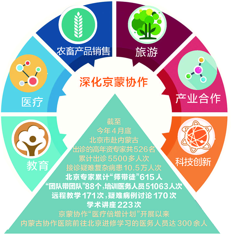 ●2023年6月,京蒙两地政府签订《全面深化京蒙协作框架协议》,提出着力实施教育、医疗、农畜产品销售、旅游、产业合作、科技创新等“六个倍增计划”。