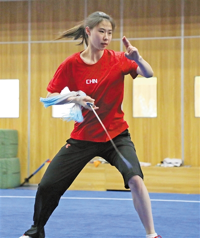 7月1日清晨,呼和浩特市体育运动学校武术馆热闹起来。刀光剑影中,武术队员正挥汗训练——长棍劈下时破空声响彻场馆,队员们的吼声气势如虹。训练场上,队员们的一招一式刚劲有力,尽显武术魅力。陈文艳教练在场边仔细观察每个动作细节,不时上前指导。“这届运动会武术项目规则有所变化,所以我们面临的压力不小,但队员们都很拼,我们相信付出总会有回报。”陈文艳说。