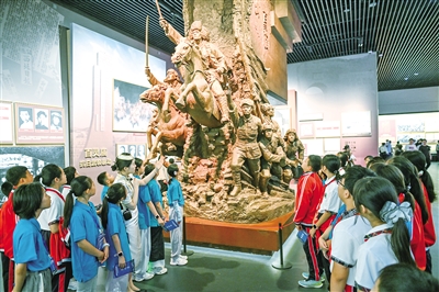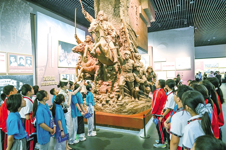 8月20日,小学生们在“解放之路——内蒙古革命史陈列展厅”参观展览。当日,由自治区教育厅主办的“基地学子赴首府・筑梦航天未来行”研学活动在内蒙古博物院举行,来自阿拉善盟的15名学生与首府地区15名学生结对,共同开启一场跨越地域的知识探索与情感联结之旅。本报记者 王磊 摄