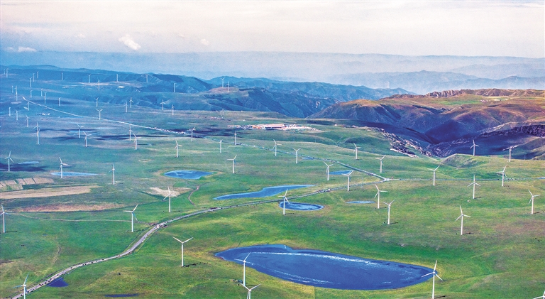 9月7日,乌兰察布市辉腾锡勒草原上风力发电机与大草原完美融合,成为一道靓丽的风景线。近年来,内蒙古借助“无限”的风光资源,成为领跑全国的新能源大区。上半年,全区新能源新增装机1028万千瓦,总装机超过1.45亿千瓦,全国第一,领先第二名近1400万千瓦。本报记者 孟和朝鲁 摄