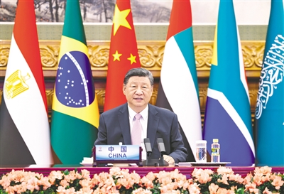 习近平指出,当前,世界百年变局加速演进,霸权主义、单边主义、保护主义甚嚣尘上。金砖国家作为全球南方第一方阵,要坚持弘扬开放包容、合作共赢的金砖精神,共同捍卫多边主义,维护多边贸易体制,推进“大金砖合作”,携手构建人类命运共同体。