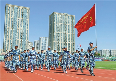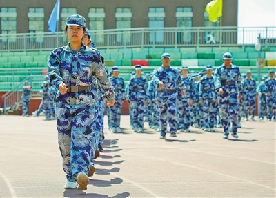 记者在内蒙古大学军训场上看到,军训内容涵盖了军体拳、队列训练、内务整理等多项内容,该校4500余名新生在教官的严格指导下在军训场上挥洒汗水,增强体质,锤炼意志,上好大学生活“第一课”。
