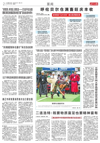丰收的喜悦不仅在田间地头,更在乡村旅游的火热场景中。■下转第3版 ■上接第2版 呼伦贝尔市依托“大草原、大森林、大湿地”生态优势,深入推进农文旅融合发展,打造“呼伦贝尔大草原”超级IP。目前,全市拥有扎兰屯市、额尔古纳市等3个国家级休闲农业和乡村旅游示范县,鹿鸣山庄、东光村等3个国家级示范点,6个“中国美丽休闲乡村”,1个全国休闲农业重点县,8个自治区“农文旅示范村镇”,游客在体验丰收乐趣的同时,可以感受呼伦贝尔的独特风情,为乡村振兴注入持续动能。