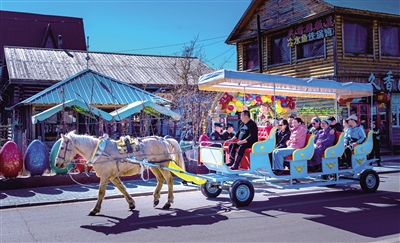 村内体验丰富,周边联动更添层次。从村落出发,向西可至额尔古纳河界碑观景,向北能穿越白桦林抵达哈乌尔河景区,沿途的“网红打卡点”和俄式马车停靠站,为年接待游客60余万人次提供了有力的支撑。