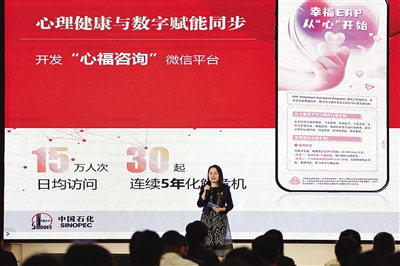10月10日,来自中国石化的参会代表在活动上进行主题宣讲。10月10日,2025年世界精神卫生日主题宣传活动在北京举行,今年的活动主题为“人人享有心理健康服务”。活动以宣传片、主题宣讲、舞台剧表演等形式开展,并发布了“用支持消除偏见,用服务传递温暖”主题倡议。