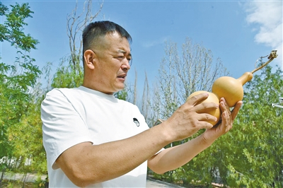 苏海峰今年50岁,他潜心钻研葫芦烫画技艺二十余载,创作出上千件精美的葫芦烫画作品。2022年4月,他被自治区文化与旅游厅评为“2022年农村牧区文化示范户”,成为乌海市唯一获此殊荣的民间艺术家。