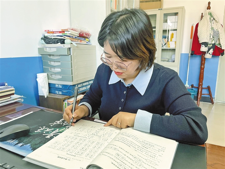 12月2日,在鄂尔多斯市准格尔旗薛家湾第六小学教职工办公室,王彩霞老师正用一支植入“黑科技”的智能笔在智能作业本上批改作业。随着笔尖在学生姓名贴上轻轻点击,智能笔清晰地显示出该学生的做题正确率,教师可借助智能手机为学生定制适合的难点题型,实现个性化教学。