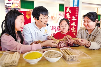 2月10日,小朋友们在内蒙古展览馆体验麻糖制作。当日,恰逢北方小年,内蒙古展览馆精心筹备的“传统手工艺大课堂”社会教育研学活动正式启动,6场社会教育研学活动吸引近400人现场参与。本系列活动元宵节期间还将推出2期活动,全方位覆盖新春民俗节点,让群众在体验中感受传统手工艺的独特魅力。 本报记者 王磊 摄