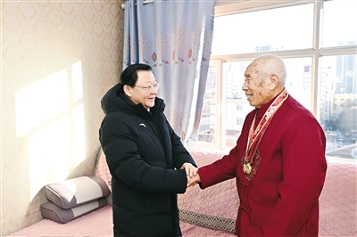 农历小年,王伟中来到志愿军老战士许振家中,与老人亲切交谈,关切询问身体状况和生活情况,认真聆听老人讲述军旅故事、回忆峥嵘岁月,向他表达由衷敬意并祝愿老人健康长寿。■下转第4版 ■上接第1版 他要求深入挖掘、大力宣传老战士的革命事迹和革命精神,在全社会营造尊崇英雄、学习英雄、争做英雄的浓厚氛围。有关部门要用心用情用力做好服务保障工作,落实好各项优抚政策,让老人们安享幸福晚年。老党员李玉兰退休后一直闲不下来,成功调解大量矛盾纠纷,被评为自治区“金牌调解员”。在李玉兰家中,王伟中向她送上新春祝福,感谢她为维护社会和谐稳定作出的贡献,希望她继续发光发热,为提升基层治理效能贡献更多经验智慧、更多银发力量。随后,王伟中看望慰问了全国民族团结进步模范个人布和图木尔,勉励他珍视荣誉、再接再厉,在推进中华民族共同体建设方面发挥好模范带头作用,以实际行动展现“最美新时代革命军人”的担当与风采。