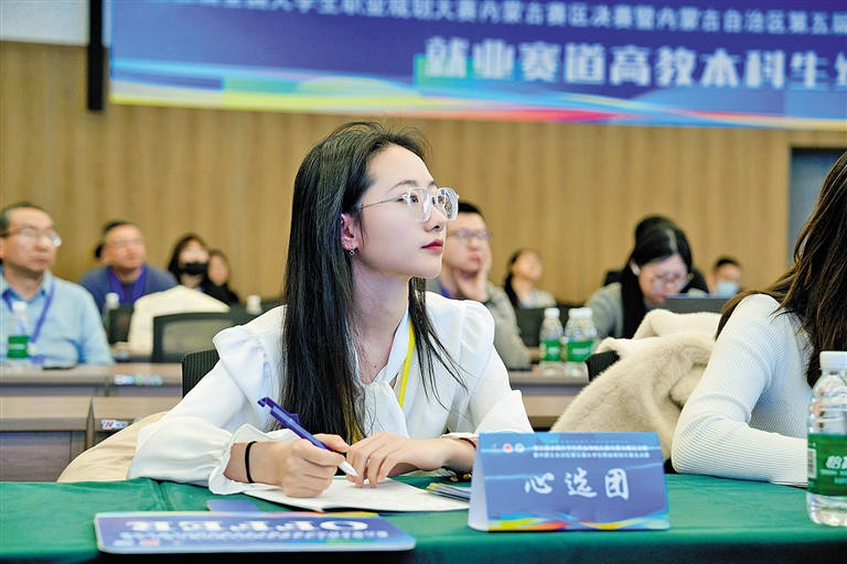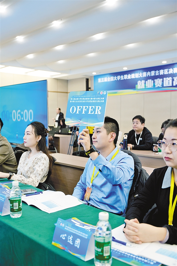 大赛搭建起人才供需对接的大平台、服务毕业生就业的大市场。决赛中,内蒙古自治区教育厅还邀请了内蒙古正大有限公司、内蒙古蒙牛乳业(集团)股份有限公司、中铁北京工程局集团第六工程有限公司等50家企业代表组成“企业心选团”,为企业发展储备后备人才,也为大学生提供更多就业选择。内蒙古正大有限公司人力资源经理于博丞在本次大赛中共给出了4份实习offer,能参与大赛他感觉很荣幸:“比赛搭建起用人单位与学生沟通的桥梁,很有意义。比赛中我见识了很多让人眼前一亮的优秀学生,他们的思维能力、应变能力、沟通能力都很好,也符合我们企业选拔人才的核心标准。希望他们有机会能够加入企业,为企业建设添砖加瓦。”
