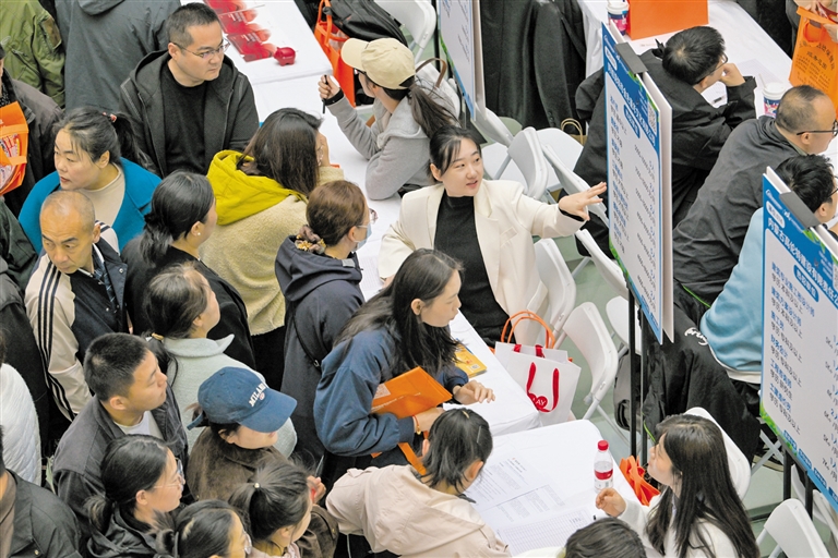 3月28日,求职者在招聘会上寻找心仪岗位。当日,由呼和浩特市玉泉区人民政府主办的2026年“春风行动暨就业援助季”专场招聘会,在呼和浩特市七彩城购物中心开展。招聘会汇聚121家企业,提供项目后勤、电气工程师、会计等3337个就业岗位,为高校毕业生、务工人员、就业困难群体等提供了多样化岗位选择。本报记者 王磊 摄
