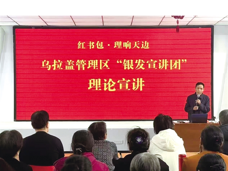 紧扣凝心铸魂主题,不断铸造和提升群众的思想认知水平以及实践创新能力,营造出团结一心、勇毅前行,共同建设美丽乌拉盖的浓烈氛围。“共富共享”宣传载体创新创建的“红书包·理响天边”理论宣讲品牌,将榜样模范、文明实践、银发和百姓名嘴等各类宣讲团集结在一起,开展丰富多彩的文明实践活动,“文明实践+”遍布城乡的每一个角落。各项宣讲活动的走深走深,激活文化宣讲新动能,点燃文化活动新热潮,党员干部主动靠前服务的意识显著增强,老百姓跟进的步伐更加自觉。乌拉盖管理区党政领导带头深入基层调研指导,各级党员干部分类分众宣讲,使党的惠民政策深入人心。随着“双进双服务”工作机制的深入推进,79个部门单位800余名党员常态化深入社区开展各类精准服务,受到社区群众广泛好评。